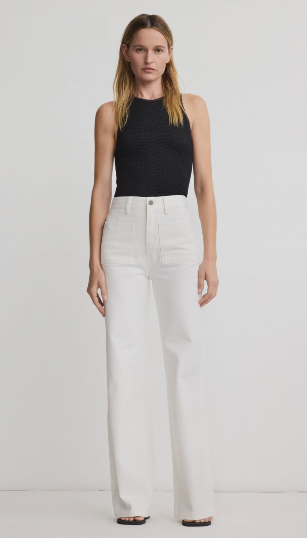 Style Notes: A fitted waist and 70’s-inspired patch pocket details offer subtle structure. Tuck in a tee or blouse to emphasize the high waist—it’s a silhouette designed to lengthen, elevate, and define.