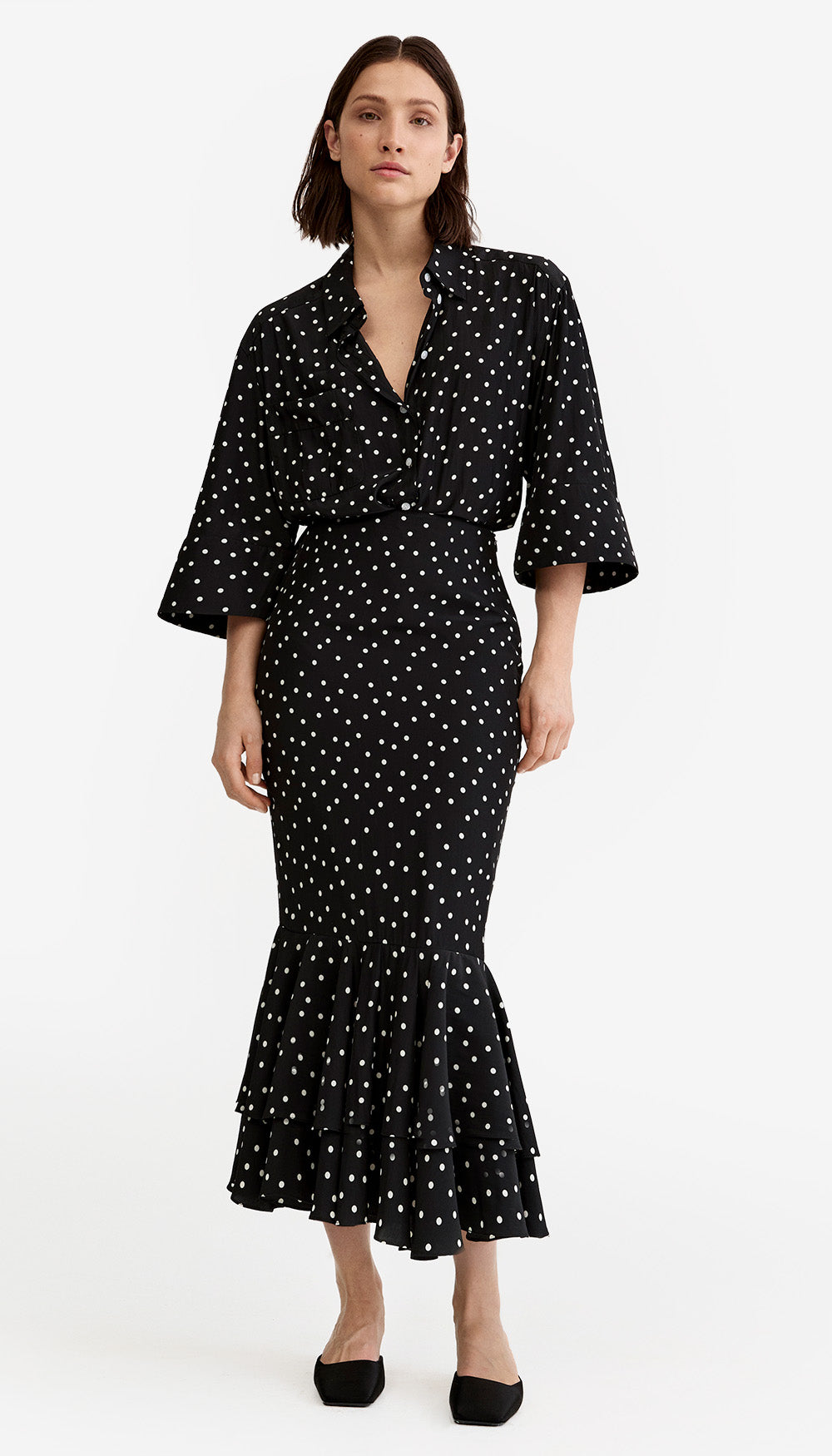 Details: Mid-rise and fitted through the waist and hips, this midi-length skirt features tiered layers at the hem that flounce when you walk. This garment fits true to size, take your usual size.
