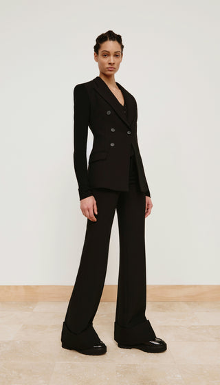 It's the hero of a four-piece collection—featuring a waistcoat, cuffed trousers, and bootcut pants—all designed in the same seasonless stretch fabric to mix, match, and move effortlessly with you.