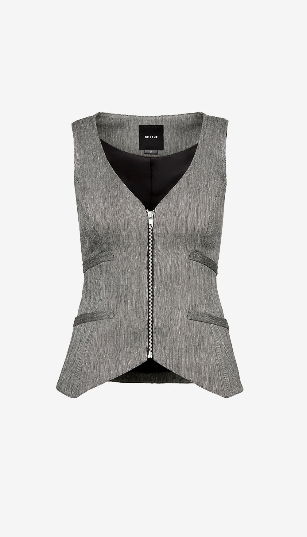 Details: Decidedly tailored, this stretch single breasted waistcoat is bra-friendly and features an exposed zipper and flattering angled pocket welts. Curvy figures may wish to go up a size.