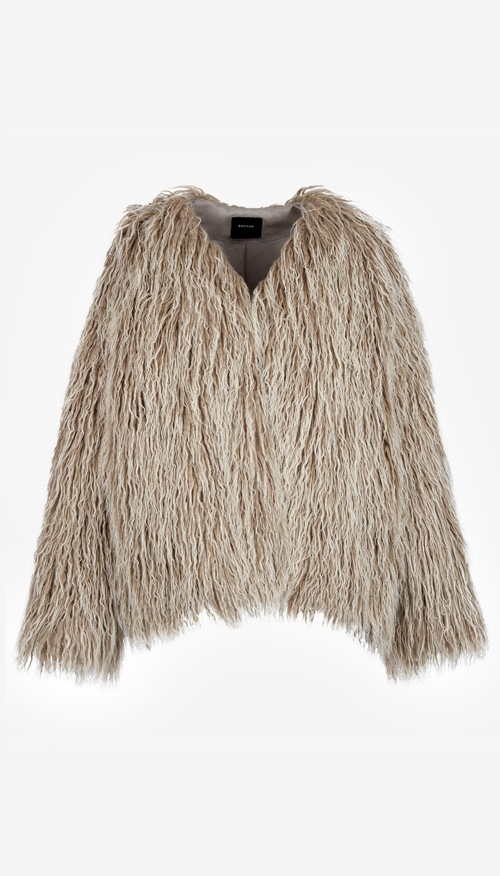 Details: A democratic fit, this subtle swing silhouette has great drape and none of the bulk often associated with faux fur. This collarless jacket features hidden hook and eye closures. This garment fits true to size, take your usual size.