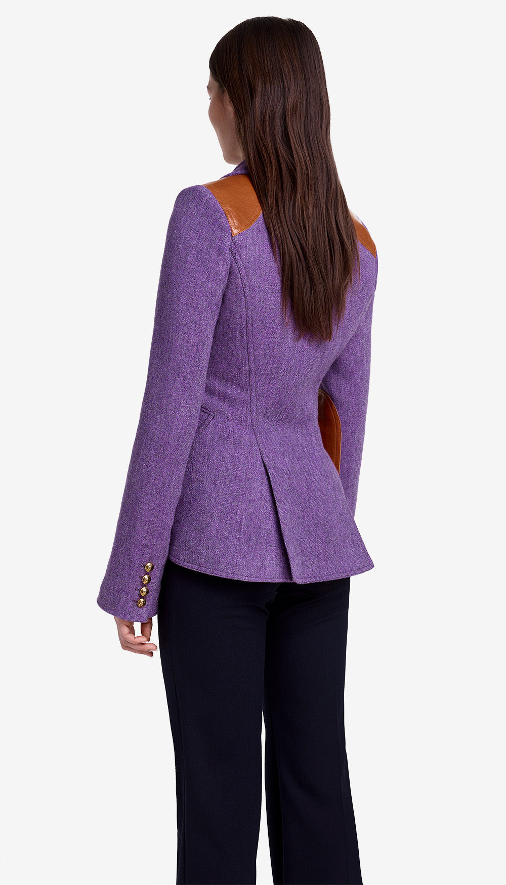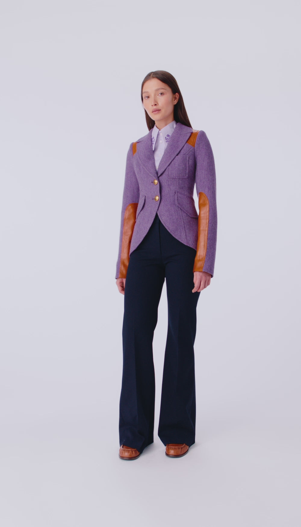Details: Decidedly tailored and a best-selling silhouette, this equestrian blazer has been modernized with new pocket details and a distinct leather saddle patch on the forearm. Curvy figures may wish to go up a size.